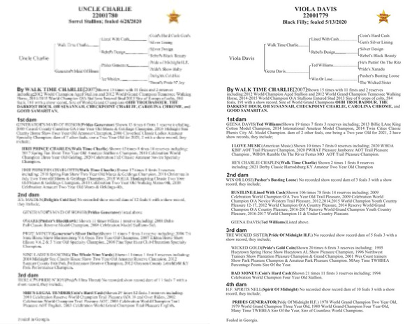 HRH PRINCESS CHARLOTTE ( Walk Time Charlie ) Shown 17 times 5 firsts 3 reserves including ; 2018 Spring Fun Show Two Year Old Mares & Geldings Champion , 2018 Christmas in July Two Year old Mares & Geldings Champion , 2018 WHTA Thanksgiving Classic Two Year Old Mares & Geldings Champion , 2018 Celebration Two Year Old Walking Mares-9th , 2018 Celebration Amatuer Two Year Old Mares & Geldings-4th .