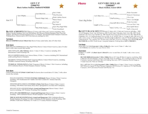 GEN ' S BIG DOLLAR 22000887 Black Stallion ; foaled 4 / 8 / 20