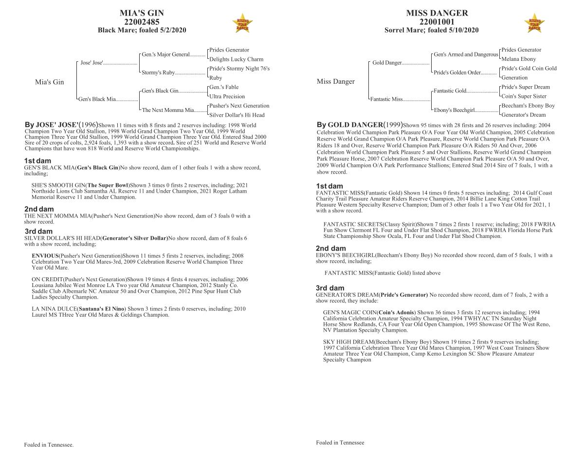 GEN ' S BLACK MIA ( Gen ' s Black Gin ) No show record , dam of 1 other foals 1 with a show record , including ;