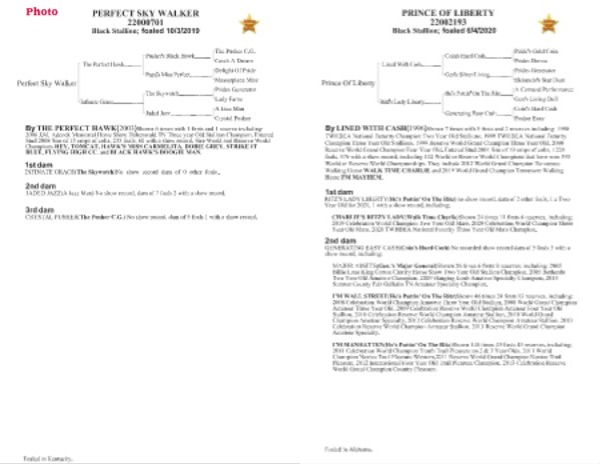 PERFECT SKY WALKER 22000701 Black Stallion ; foaled 10 / 3 / 2019