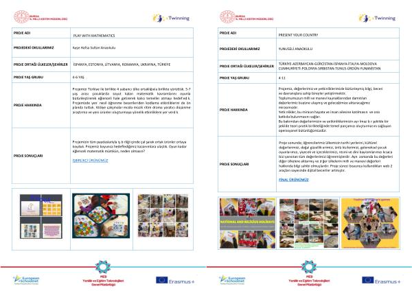 Projemizi Türkiye ile birlikte 4 yabancı ülke ortaklığıyla birlikte yürüttük . 5-7 yaş arası çocuklarda soyut kalan matematik kavramlarını oyunla bütünleştirerek eğlenceli hale getirerek kalıcı temeller atmayı hedefledik . Projemizde yeni nesil öğrenme becerileriden kodlama etkinliklerini de ön planda tuttuk . Atölye çalışmalarımızda müzik ritim drama yaratıcı düşünme araştırma ve yeni ürünler oluşturmaya yönelik etkinliklere yer verdik .