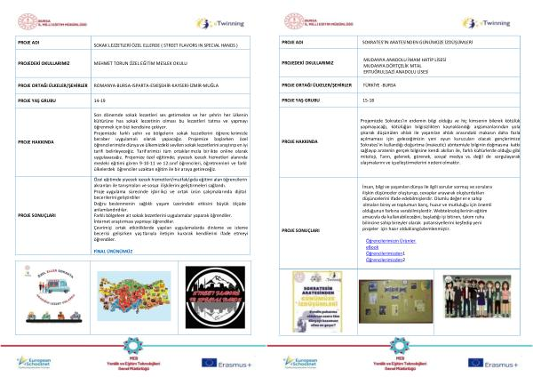 Özel eğitimde yiyecek içecek hizmetleri / mutfak / gıda eğitimi alan öğrencilerin akranları ile tanışmaları ve sosyal ilişkilerini geliştirmeleri sağlandı . Proje uygulama sürecinde işbirlikçi ve ortak ürün çalışmalarında dijital becerilerini geliştirdiler . Doğru beslenmenin sağlıklı yaşam üzerindeki etkisini büyük ölçüde anlamlandırdılar . Farklı bölgelere ait sokak lezzetlerini uygulamalar yaparak öğrendiler . İnternet araştırması yapmayı öğrendiler . Çevrimiçi ortak etkinliklerde yapılan uygulamalarda dinleme ve izleme becerisi gelişirken yaşıtlarıyla iletişim kurarak kendilerini ifade etmeyi öğrendiler .
