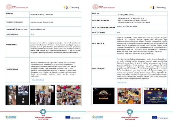 Ramazan ; kardeşlik ve sevgi bağlarının güçlendiği , ruhlarımızın güzel öğütlere ve uyarıcı telkinlere açık olduğu , manevi duygularımızın canlılık kazandığına birlik ve beraberliğimizin daha da güçlendiği kutsal ve uğurlu bir aydır . Proje sonucunda ; öğrencilerimizin bu güzel Ramazan ayının maneviyatını anlamalarını , gelenek ve göreneklerle bu ay yasamalarını , paylaşmayı alışkanlık haline getirmelerini , empati kuran , çevresindekileri düşünen , duyarlı bireyler olmalarını sağlamaktır .