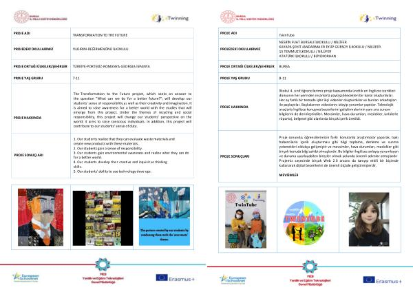 The Transformation to the Future project , which seeks an answer to the question " What can we do for a better future ?"; will develop our students ' sense of responsibility as well as their creativity and imagination . It is aimed to raise awareness for a better world with the studies that will emerge from this project . Under the themes of recycling and social responsibility , this project will change our students ' perspective on the world ; it aims to raise conscious individuals . In addition , this project will contribute to our students ' sense of duty .