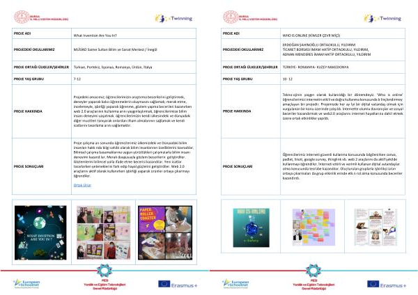 Proje çalışmaları sonunda öğrencilerimiz ülkemizdeki ve Dünyadaki bilim insanları hakkında bilgi sahibi olarak bilim insanlarının özelliklerini kavradılar . Bilimsel çalışma basamaklarına uygun yürüttükleri çalışmalarla bilim insanı deneyimi kazandılar . Merak duygusuyla gözlem becerilerini geliştirdiler . Gözlemlerini bilimsel yolla ifade etme becerisi kazandılar . Yeni icatlar tasarlarken yeteneklerini fark edip hayal güçlerini geliştirdiler . Web 2.0 araçlarını aktif olarak kullanırken işbirliği yaparak ürünler ortaya çıkarmayı öğrendiler .