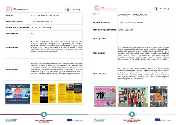 Projemizde okullarda büyük bir problem olan Zorbalıkla ilgili farkındalık yaratmayı , öğrencileri bilinçlendirmeyi , öğrencilerin bu konudaki düşüncelerini farklı etkinliklerle ifade etmelerini amaçlıyoruz . Diğer okullarla iş birliği içinde yürüteceğimiz projemizin iki aylık bir süreçte yapılacak etkinliklerle tamamlanmış olacak . Projemiz içerisinde drama , şiir , resim , anket , web 2 araçları kullanımı gibi etkinlikler planladık .