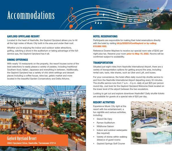 Participants are responsible for making their hotel reservations directly with the hotel by visiting bit . ly / 2022CUConfGaylord or by calling 615.889.1000 .