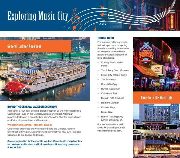 Welcoming Reception - Monday , June 20 Conference attendees are welcome to board the General Jackson Showboat at 6:15 p . m . Departure will be promptly at 7:00 p . m . The boat will return to the dock at 10:00 p . m .