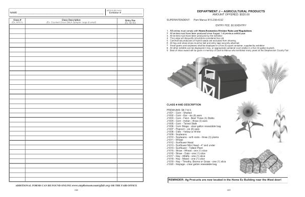 DEPARTMENT J – AGRICULTURAL PRODUCTS AMOUNT OFFERED : $ 520.00