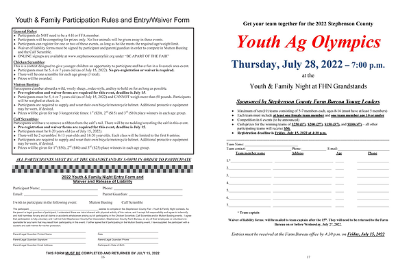 2022 Youth & Family Night Entry Form and Waiver and Release of Liability