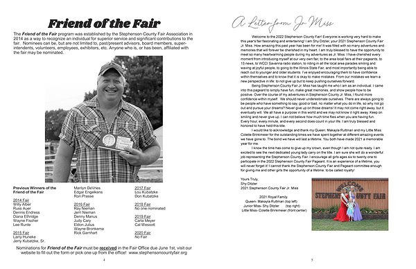Nominations for Friend of the Fair must be received in the Fair Office due June 1st , visit our website to fill out the form or pick one up from the office ! www . stephensoncountyfair . org