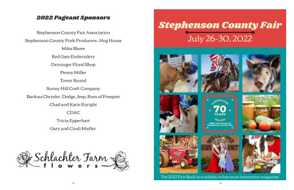 Stephenson County Fair Association Stephenson County Pork Producers — Hog House Mike Shore Red Gate Embroidery Deininger Floral Shop Penny Miller Tower Sound Sunny Hill Craft Company Barkau Chrysler , Dodge , Jeep , Ram of Freeport Chad and Katie Enright CDAC Tricia Epperhart Gary and Cindi Mielke