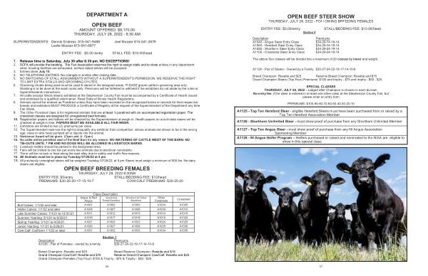 OPEN BEEF STEER SHOW THURSDAY , JULY 28 , 2022 - FOLLOWING BREEDING FEMALES
