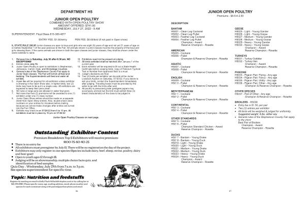JUNIOR OPEN POULTRY Premiums - $ 8-5-4-2.50