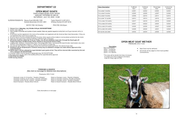 OPEN MEAT GOATS SANCTIONED BOER GOAT SHOW AMOUNT OFFERED $ 1,560.00 SATURDAY , JULY 30 , 2022 - 9 AM