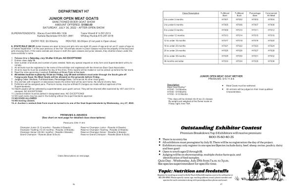 JUNIOR OPEN MEAT GOAT WETHER PREMIUMS : $ 16-11-8-6
