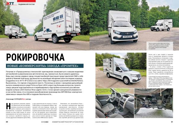 Получив от « Промышленных технологий » приглашение ознакомиться с новыми моделями автомобилей на Дмитровском автополигоне , мы , признаться , были немало удивлены . Ведь еще совсем недавно завод спецавтомобилей приглашал представителей СМИ к себе домой в Нижний Новгород , где выкатил на всеобщее обозрение свои последние новинки ( подробности в « КТТ » № 3 / 2022 и на сайте : https :// ktt-magazine . ru / promtehnovinki04292022 ). Выяснилось , что ларчик открывался просто . Поскольку в связи с санкциями дальнейший выпуск коммерческого ряда Prima на базе LADA Largus под большим вопросом , промтеховцы решили подстраховаться и перебазировать надстройки на исконно российские модели на базе LADA Granta и Niva Legend . Хотя с точки зрения санкционной уязвимости и они не без греха , что и показало возобновление производства АВТОВАЗом « импортонезависимых » машин без ABS и подушек безопасности …