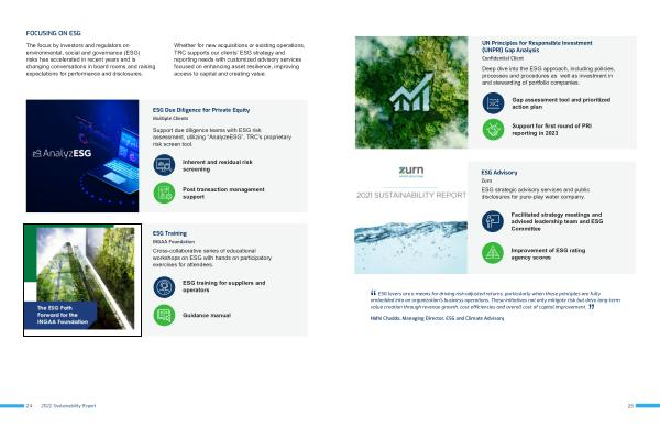 ESG strategic advisory services and public disclosures for pure-play water company .