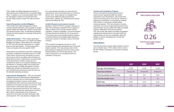 The following table provides safety statistics over the last 3 calendar years . TRC ’ s safety metrics include all TRC entities , including our construction business groups .