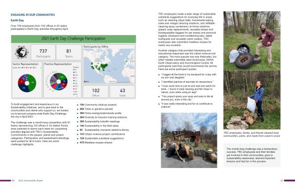 The month-long challenge was a tremendous success . TRC employees and their families got involved in their communities , grew in sustainability awareness , learned important lessons and had fun in the process .