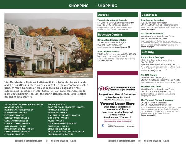 SHOPPING IN THE SHIRES | PAGES 48-59 AWARDS | PAGE 50 BEVERAGE CENTERS | PAGE 50 BOOKSTORES | PAGE 50 CLOTHING | PAGE 50 CONFECTIONERY | PAGE 51 CONSIGNMENT | PAGE 51 COUNTRY STORES | PAGE 51 CYCLE SALES | PAGE 51 DEPARTMENT STORES | PAGE 51 ENTERTAINMENT | PAGE 52 FLOORING | PAGE 52