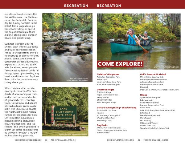 COME EXPLORETHESHIRES . COM 64 FOR INFO CALL 802.447.2456