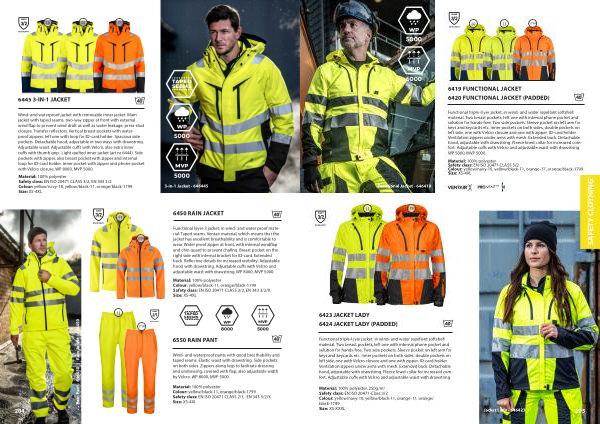 Material : 100 % polyester Colour : yellow / black-11 , orange / black-1799 Safety class : EN ISO 20471 CLASS 3 / 2 , EN 343 3 / 2 / X Size : XS-4XL