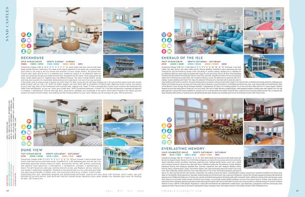 Oceanfront Cottage , 8 BR , 8 ½ B . K * K * K * K * K * K * K * 2S . Sand Castle Club linen service with beds made and No Worries Comforters . The views of the beach strand from the decks are so spectacular , you ’ ll want to rise early to see the sunrise and schedule al fresco sunset dinners . The ground floor covered patio leads directly out to a saltwater pool , heated by request for an additional $ 600 per week , surrounded by the spacious entertainment area integrated into the dunes . Three large gathering areas create ample space for togetherness and different interest . The open concept kitchen , dining and living area is perfect for memorable family dinners and celebrations . Curl up on the cozy sectional in the media room to enjoy movies or games on an 80 ” Smart TV . Kids , young and old , will enjoy hanging out in the ground floor game room with arcadegrade foosball , wet bar , and a 70 ” Smart TV . Bright , elegant and open décor with an abundance of natural light . Bedrooms blend comfort and privacy , so you ’ ll rest easy . Each of the 8 bedrooms have a private bath , luggage rack , Smart TV and is branded with Crystal Coast locations like Morehead City , Salter Path and Beaufort , so you can “ claim ” your private spot . Three oceanfront bedrooms , 11 Smart TVs , 2 full-size refrigerators , beverage refrigerator , 2 icemakers , 2 dishwashers , 6-burner Wolf gas stove , large pantry , saltwater pool , boardwalk to the beach , turtle watch nestled in the dunes , gas grill , outdoor enclosed hot / cold shower , foot washing and fish-cleaning station for your catch . Weekly only . No smoking . No pets . 3703 Ocean Drive .