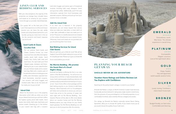 Emerald Isle Realty is offering the first in our area option of No Worries Bedding . You will arrive to a snowy white comforter or triple sheeted beds , bed linens , fresh mattress pads and pillow protectors , all professionally laundered and sanitized prior to your arrival . If your home offers a linen package and the bed making amenity or you choose to add these features , Island Essentials and our housekeepers will follow strict protocols to ensure you and your loved ones arrive to the promise of sweet rest each night with our No Worries Bedding . Your Vacation Planner will be able to offer more details about our vacation homes and the No Worries Bedding option you may choose for your family beach getaway . Our No Worries Bedding icon will alert you to which properties offer this amenity .