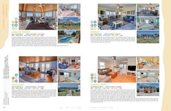 Oceanfront Cottage , 7 BR , 4 B . K * K * Q * Q * Q * Q * 2S . Classic Carolina Club linen service with beds made and No Worries Comforters . Second living area downstairs with 2 bedrooms , full bath and kitchenette with granite countertop and refrigerator . Original wood flooring and kitchen with granite countertops and stainless sink . Dishwasher , washer / dryer , 3 cable TVs , 2 DVD players , home theatre system , wireless Internet access , ceiling fans . Spacious , central living area . Covered porch , open deck and dune deck with porch rockers . Grill , enclosed hot / cold outside shower . Three-night minimum . Available year-round . No smoking . No pets . 5411 Ocean Drive .
