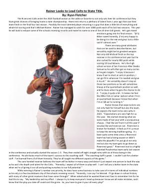 The Rivercrest Colts enter the 2023 football season as the odds-on favorite to not only win their 4A conference but they have great chances of bringing home a state championship . Rivercrest returns a plethora of talent from a year ago that saw their team finish in the final four last season . Possibly the most talented player returning is a guy that does a little bit of everything and whole lot scoring and that ’ s Michael Rainer . Rainer has managed to catch for over 1000 yards each of his last two seasons . This year he will look to eclipse some of the schools receiving records and make his name as one of the all-time Colt greats . He ’ s got mixed emotions going into his final season . “( It ’ s ) Bitter sweet honestly , ( I ’ m ) very happy to be doing it in the red and grey ! Just a little sad it ’ s almost over .”