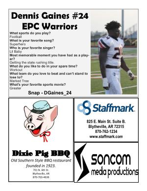 What sports do you play ? Football What is your favorite song ? Superhero Who is your favorite singer ? Lil Baby Most memorable moment you have had as a player ? Getting the state rushing title . What do you like to do in your spare time ? Workout What team do you love to beat and can ' t stand to lose to ? Marked Tree What ' s your favorite sports movie ? Greater