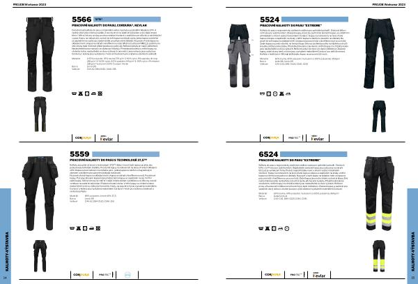 Kalhoty do pasu s ergonomicky zesíleným sedlem vzadu pro optimální pohodlí . Strečová látka v rozkroku pro vyšší komfort . Odpínatelné závěsné kapsy jsou uchyceny na skryté liště , jež je vynálezem firmy ProJob ; mají přihrádky navíc a interní výztuž materiálem Cordura ® . Kapsy na nohavicích , na levé straně kapsa s klopou a zapínáním na druky , vnitřní kapsa na telefon a pouzdro na doklady . Na pravé straně kapsa na skládací metr a kapsa na pracovní nůž s knoflíkem na pracovní nůž . Zadní kapsy jsou extra široké , na levé je klopa . Dvě nastavitelná poutka na kladívka a dva D kroužky přichycené k pásku . Předohnutá kolena s kevlarem , vnitřní kapsy na chrániče kolen jsou nastavitelné ve dvou výškách . Reflexní prvky a fluorescenční látka na nohavicích pro lepší viditelnost . Závěsné kapsy a zadní strana spodních okraj nohavic a kolen jsou pro vyšší odolnost vyztužené materiálem Cordura ® .