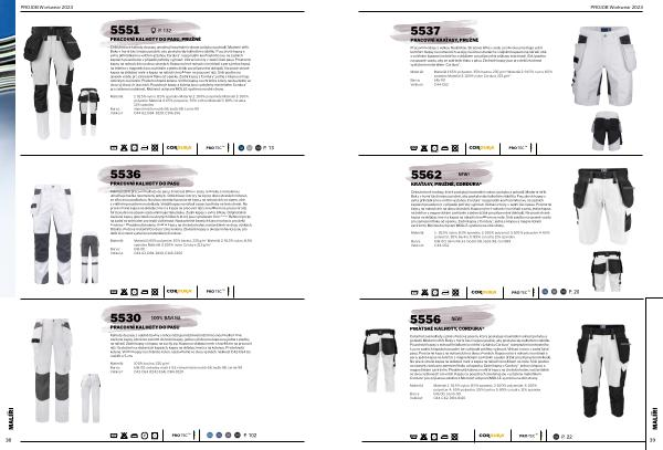 Celostrečové kalhoty s plně strečový pasem , který poskytuje maximální volnost pohybu a pohodlí . Moderní střih . Boky v horní části nejsou pružné , aby poskytovaly kalhotám stabilitu . Pouzdrové kapsy s extra přihrádkami a vnitřní výztuhou Cordura ®, rozepnutím kontrastního švu na zadních kapsách pouzder lze v případě potřeby vyjmout . Větrací otvory v zadní části pasu . Prostorné kapsy na nohavicích na obou stranách . Kapsa na levé nohavici na nářadí a pera , jedna kapsa na telefon s magnetickým zavíráním a jeden držák pro připevnění dolkadů . Na pravé straně kapsa na skládací metr a kapsa na nářadí s knoflíkem na nože . Širší poutko na opasek vzadu pro zamezení tlaku od opasku . Zadní kapsy z Cordury ® , jedna s klopou a magnetickým zavíráním . Předohnutá kolena a vnitřní kapsy na chrániče kolen , nastavitelné ve dvou výškových úrovních . Kapsy na pouzdrech a kolena jsou vyztuženy materiálem Cordura ® pro zvýšenou odolnost . Možnost uchycení MOLLE-systému na obě strany .