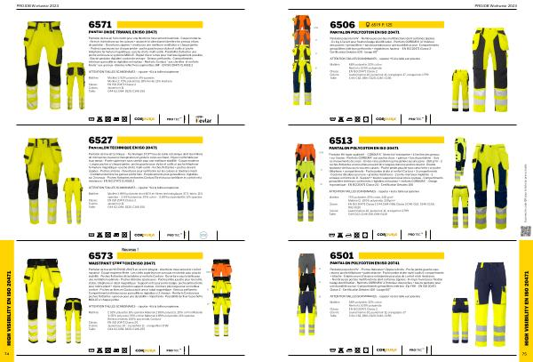 EN ISO 20471 Classe 1 C44 , D84-D88 , Classe 2 C46-C62 , C146-C156 , |