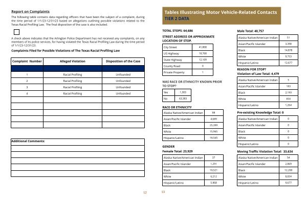Com plaint s Filed for Possible Violat ions of The Texas Racial Profiling -Quote Law Author