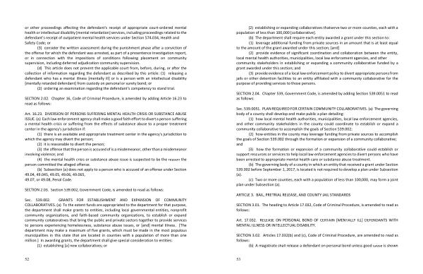 Art . 16.23 . DIVERSION OF PERSONS SUFFERING MENTAL HEALTH CRISIS OR SUBSTANCE ABUSE ISSUE . ( a ) Each law enforcement agency shall make a good faith effort to divert a person suffering a mental health crisis or suffering from the effects of substance abuse to a proper treatment center in the agency ' s jurisdiction if :
