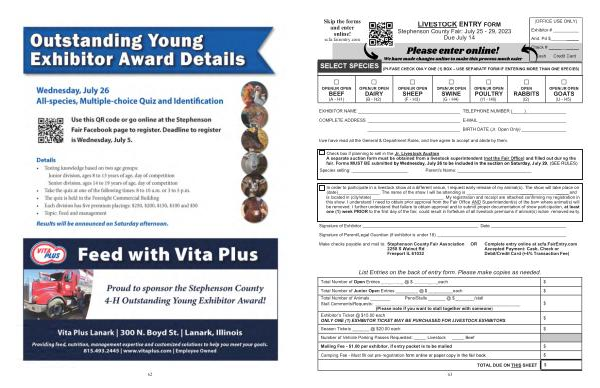 LIVESTOCK ENTRY FORM Stephenson County Fair : July 25 - 29 , 2023