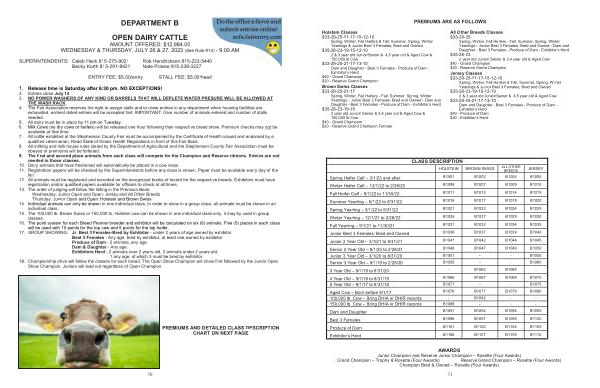 13 . The order of judging will follow the listing in the Premium Book : Wednesday : Junior Open and Open : Jersey and All Other Breeds Thursday : Junior Open and Open : Holstein and Brown Swiss