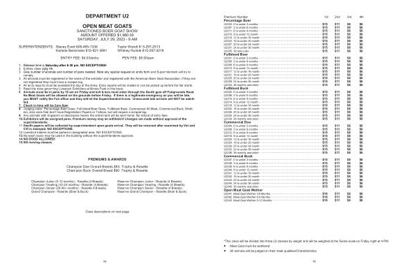 OPEN MEAT GOATS SANCTIONED BOER GOAT SHOW AMOUNT OFFERED $ 1,980.00 SATURDAY , JULY 29 , 2023 - 9 AM