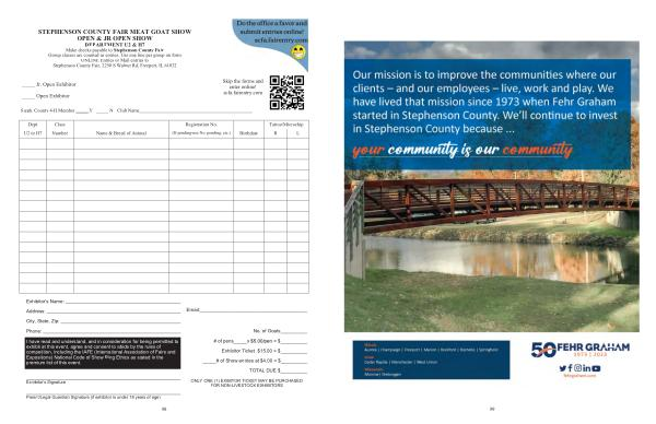 STEPHENSON COUNTY FAIR MEAT GOAT SHOW OPEN & JR OPEN SHOW DEPARTMENT U2 & H7 Make checks payable to Stephenson County Fair Group classes are counted as entries . Use one line per group on form ONLINE Entries or Mail entries to Stephenson County Fair , 2250 S Walnut Rd , Freeport , IL 61032