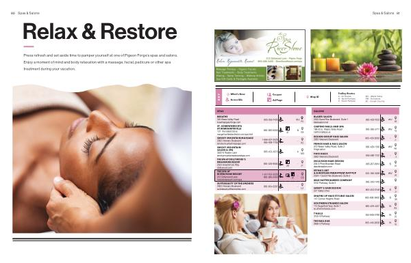 Press refresh and set aside time to pamper yourself at one of Pigeon Forge ’ s spas and salons . Enjoy a moment of mind and body relaxation with a massage , facial , pedicure or other spa treatment during your vacation .