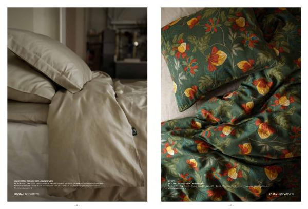 MANCHESTER SATIN | KOSTA LINNEWÄFVERI Art . nr : 421036 | Färg : Vit 00 , Sand 03 , Vinröd 38 , Marin 58 , Ljusgrå 95 , Mörkgrå 97 | Material : 100 % Bomullsatin . Trådtäthet 400 Storlek : Enkel 150 x 210 cm / 1 st 50 x 60 cm . Dubbel 230 x 220 cm / 2 st 50 x 60 cm | Förpackning : Polybag med banderoll Mer information på sid 72