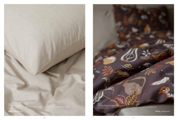 NYHET ! BANDENE SATIN | KOSTA LINNEWÄFVERI Art . nr : 421108 | Färg : Brun 08 | Material : Bomull . Trådtäthet 200 | Storlek : 150 x 210 cm / 1 st 50 x 60 cm | Förpackning : Polybag med banderoll Mer information på sid 82