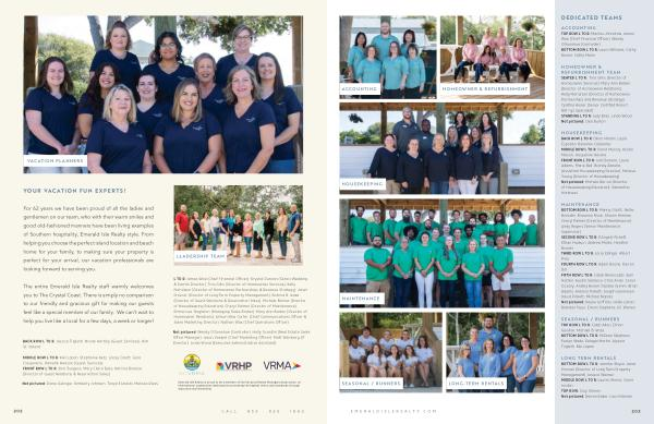 L TO R : James Wax ( Chief Financial Officer ), Krystal Duncan ( Senior Wedding & Events Director ), Tina Gillis ( Director of Homeowner Services ), Kelly Nicholson ( Director of Homeowner Partnerships & Revenue Strategy ), Janet Provost ( Director of Long-Term Property Management ), Katrina Brienza ( Director of Guest Relations & Reservation Sales ), Michele Barlow ( Director of Housekeeping Education ), Cheryl Palmer ( Director of Maintenance ), Emma Lee Singleton ( Managing Sales Broker ), Mary Ann Barber ( Director of Homeowner Relations ), Allison Wax Carter ( Chief Communications Officer & Sales Marketing Director ), Nathan Wax ( Chief Operations Officer )