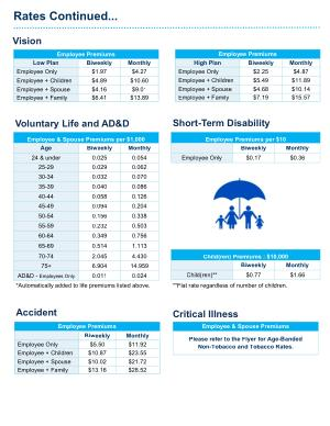 Employee Premiums per $ 10 Biweekly Monthly