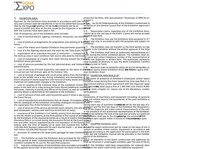 1.1 . The Exhibitor accepts the Exhibition Area provided for the Event for the period of work , installation / dismantling of the Exhibition in good condition suitable for its use for the specified purposes . 1.2 . Size and configuration of the Exhibition Area provided correspond to the agreed layout plan of the Event exposition . Increase of the Exhibition Area provided under the Contract , as well as changing of its configuration and / or location is possible only on agreement with the Organizer . 1.3 . For the Exhibitors of the Outdoor Exhibition Areas installing Exhibits with demonstration height over 17 m on their stands , the Exhibition Area is provided subject to the Organizer having :