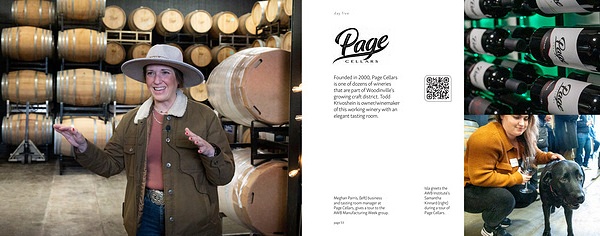 Meghan Parris,( left) business and tasting room manager at Page Cellars, gives a tour to the AWB Manufacturing Week group.