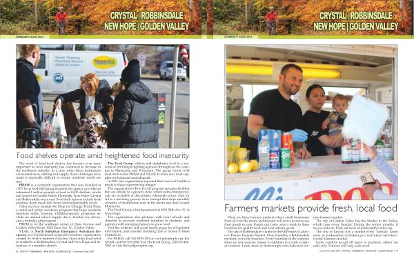 PRISM is a nonprofit organization that was founded in 1970 . In its food shelf program alone , the agency provides an estimated 1 million pounds of food to 8,000 children , adults and seniors in Golden Valley , Plymouth , New Hope , Crystal and Robbinsdale every year . Food shelf options include fresh produce , dairy , meat , deli , bread and nonperishable foods .