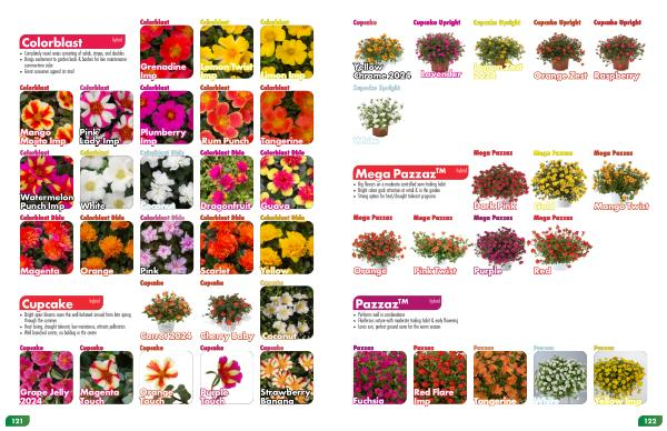 Colorblast Colorblast hybrid • Completely novel series consisting of solids , stripes , and doubles • Brings excitement to garden beds & borders for low maintenance summertime color • Great consumer appeal at retail Grenadine Grenadine Imp Imp Colorblast Lemon Twist Lemon Twist Imp Imp Colorblast Limon Imp Limon Imp Colorblast Mango Mango Mojito Imp Mojito Imp Colorblast Pink Pink Lady Imp Lady Imp Colorblast Plumberry Plumberry Imp Imp Colorblast Rum Punch Rum Punch Colorblast Tangerine Tangerine Colorblast Watermelon Watermelon Punch Imp Punch Imp Colorblast White White Colorblast Coconut Coconut Colorblast Dble Dragonfruit Dragonfruit Colorblast Dble Guava Guava Colorblast Dble Magenta Magenta Colorblast Dble Orange Orange Colorblast Dble Pink Pink Colorblast Dble Scarlet Scarlet Colorblast Dble Yellow Yellow Colorblast Dble Cupcake Cupcake hybrid • Bright open blooms cover this well-behaved annual from late spring through the summer • Heat loving , drought tolerant , low maintance , attracts pollinators • Well branched center , no balding in the center Carrot 2024 Carrot 2024 Cupcake Cherry Baby Cherry Baby Cupcake Coconut Coconut Cupcake Grape Jelly Grape Jelly 2024 2024 Cupcake Magenta Magenta Touch Touch Cupcake Orange Orange Touch Touch Cupcake Purple Purple Touch Touch Cupcake Strawberry Strawberry Banana Banana Cupcake 121